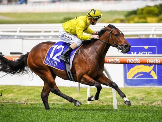 Australia's Champion 2YO filly. 2nd Golden Slipper (G1), 2nd Oakleigh Plate (G1), 2nd Robert Sangster (G1), 4th Blue Diamond (G1), 1st Percy Sykes (G2), 3rd Lightning Stakes (G2), 2nd Bobbie Lewis (G2), 1st Widden Stakes (G3), 1st WJ Healy Stakes (G3), 1st Calaway Gal Stakes (L), 1st Magic Millions 2YO Classic (L), 2nd Gold Edition (L), 3rd MM 3YO Guineas (L), 3rd Hinkler Stakes (L), 2nd Regal Roller Stakes (L). Earned $3,750,000 and sold for $4,000,000.